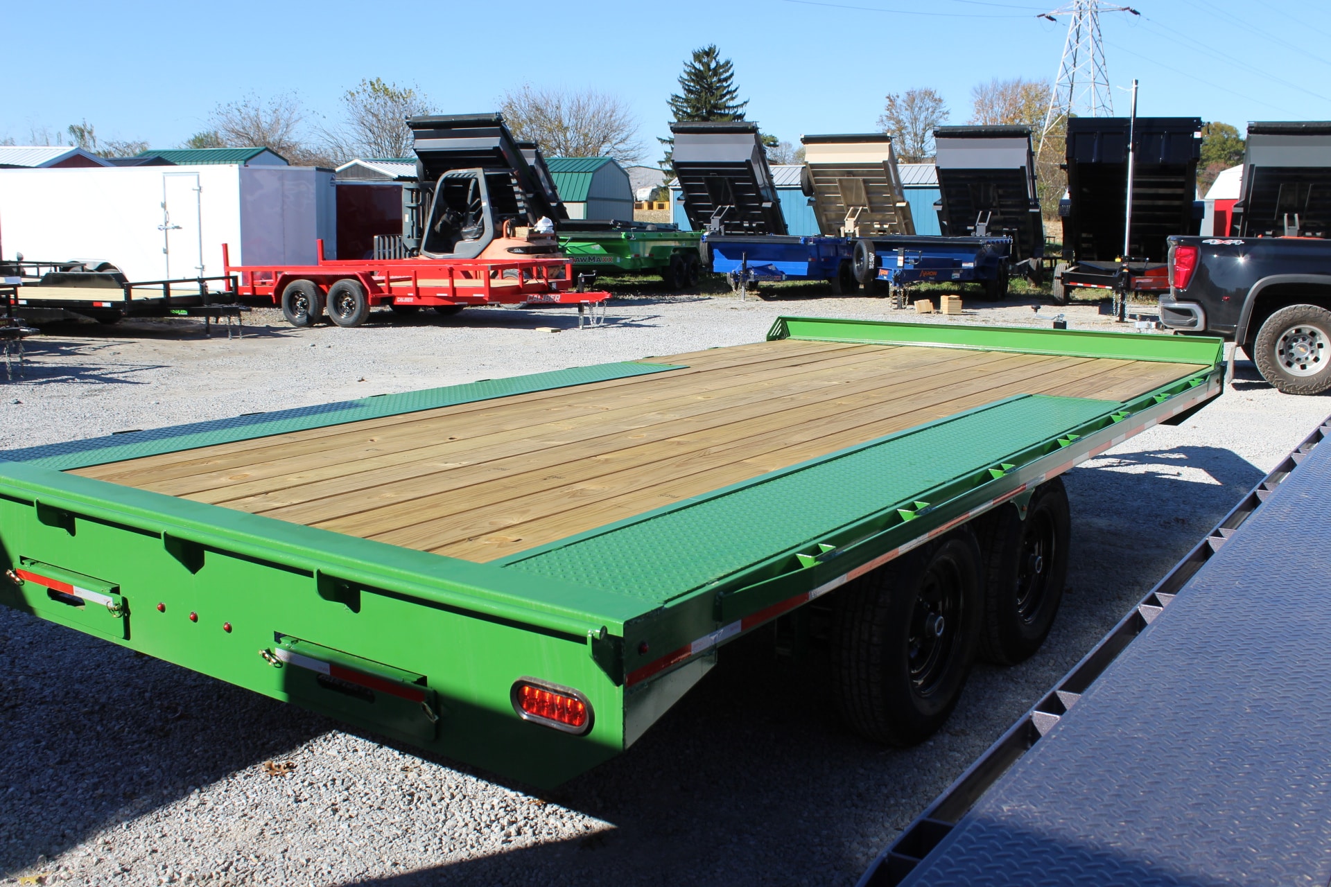 2026 DeckOver 8.5’x16’ John Deere GreenGVWR – 10,000# Axle – 5200# Brake EZ Lube w/Breakaway Coupler – Adjustable 2 5/16 Suspension – Multi-leaf Slipper Spring Safety Chain – 3/8” Grade 43 Tire/Wheel – 225/75/R15, 6 Lug, 10 ply Jack – 7K Drop leg Deck – Pressure Treated Wood Tongue – 8″ I-Beam Lights – DOT LED Frame – 8″ I-beam Paint – 2 Stage High Solid Urethane Crossmembers – 3” Channel on 18” Centers Fender – Diamond Plate Ramps – 8′ Slide Out Spare Tire MountCash price $7,487RENT TO OWN $352/mo. ($812 Down) 🔥Muscle Trailer 9144 N Wooster Ave Strasburg OH 446803303️⃣4️⃣7️⃣0725 -Gary Tuesday – Friday 9 – 5 Saturday 9 – 3